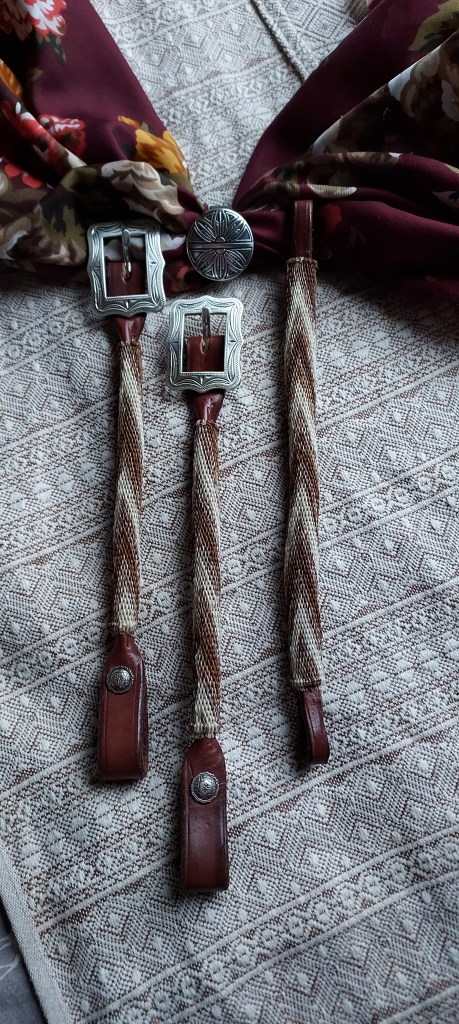 Horsehair hitching is a beautiful way to showcase your horse! One of a kind tack created for you and your horse. I am able to incorporate some of your horse’s tail hair (mane hair may work for a few projects) into your order for a special memorial piece that will last for years. I have projects I made 20 years ago that still look and function great!